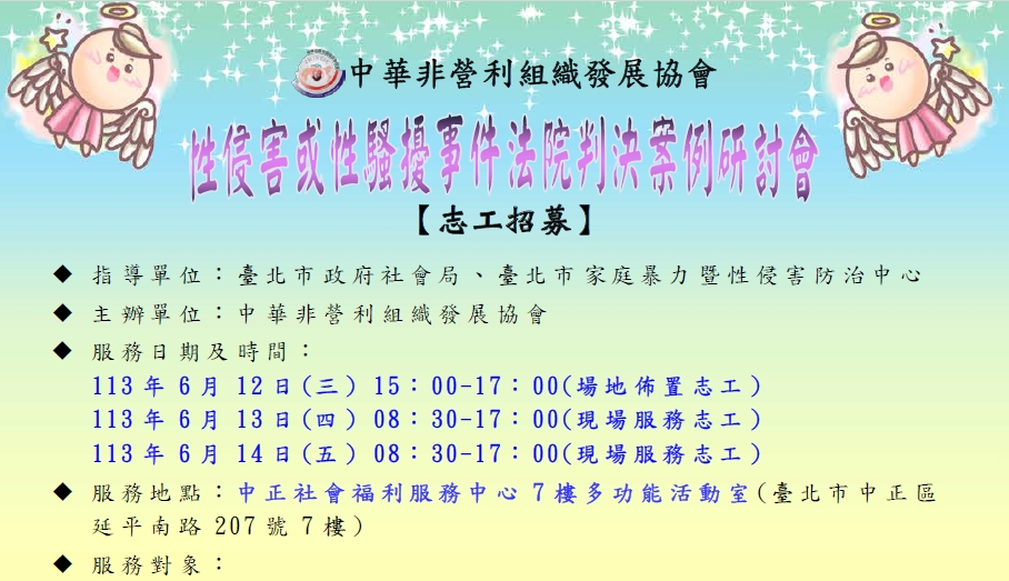 113.6.12-13-14 性侵害或性騷擾事件法院判決案例研討會』進行線上報名